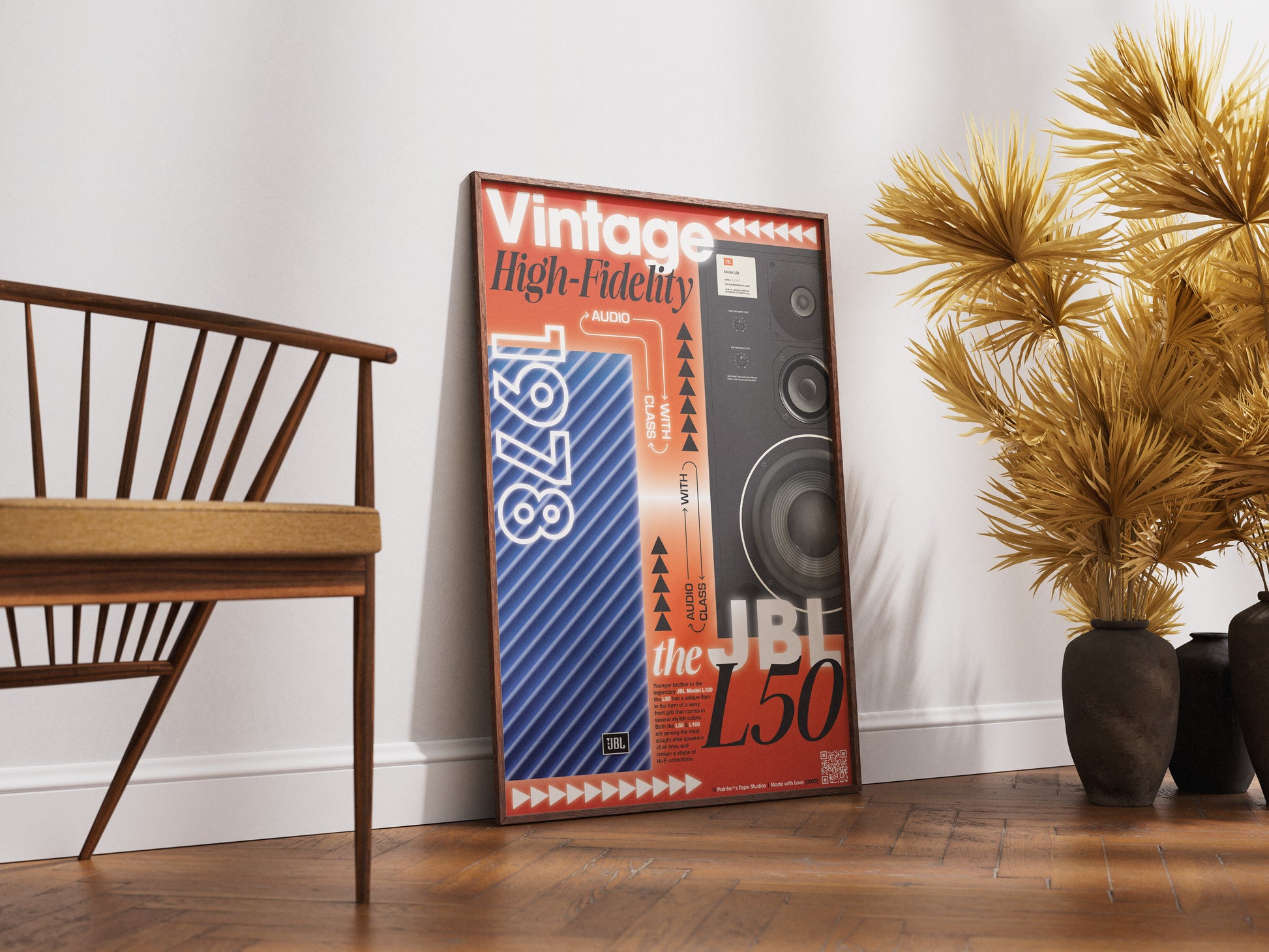 From the late 1970s, admire the bold aesthetic of the JBL L50. Dress your walls in innovation with this vintage hi-fi audio memorabilia, a perfect statement piece for any audio lover.
