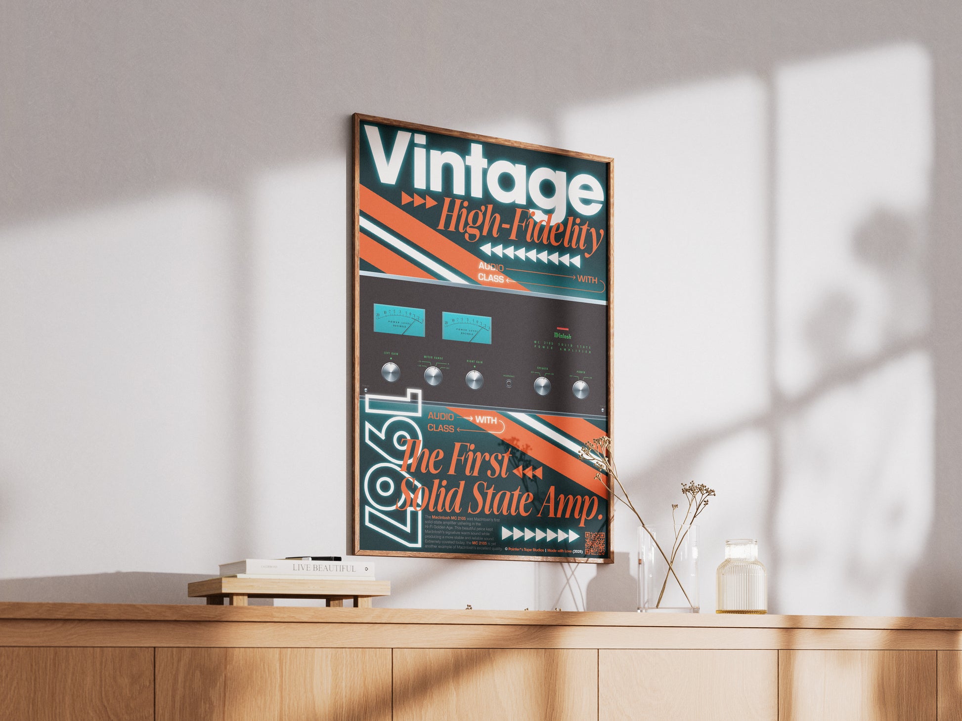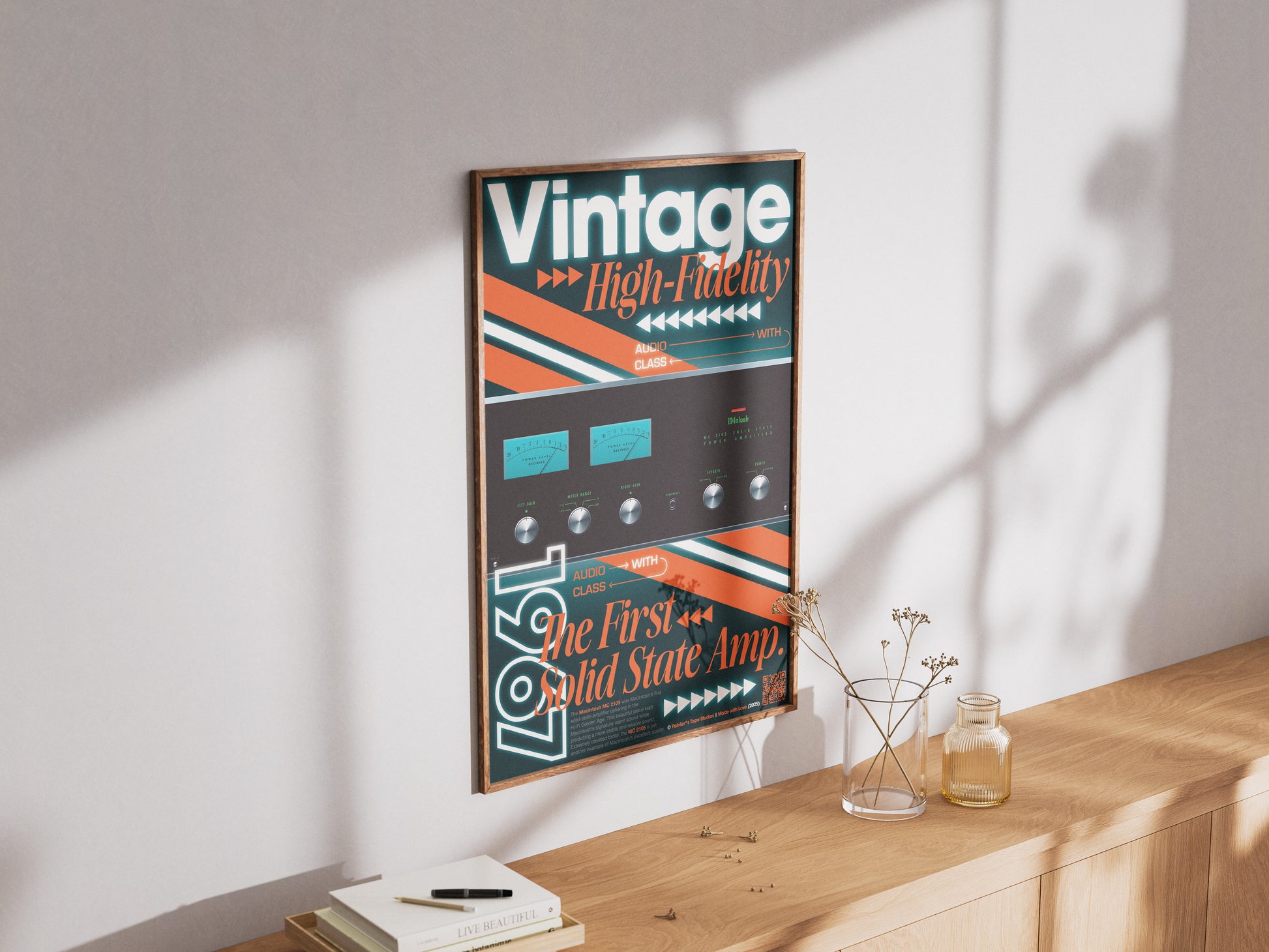 From 1967, the MC2105 was the first of its kind from McIntosh, the solid-state amp. Dress your walls in innovation with this vintage hi-fi audio memorabilia, a perfect statement piece for any audio lover.