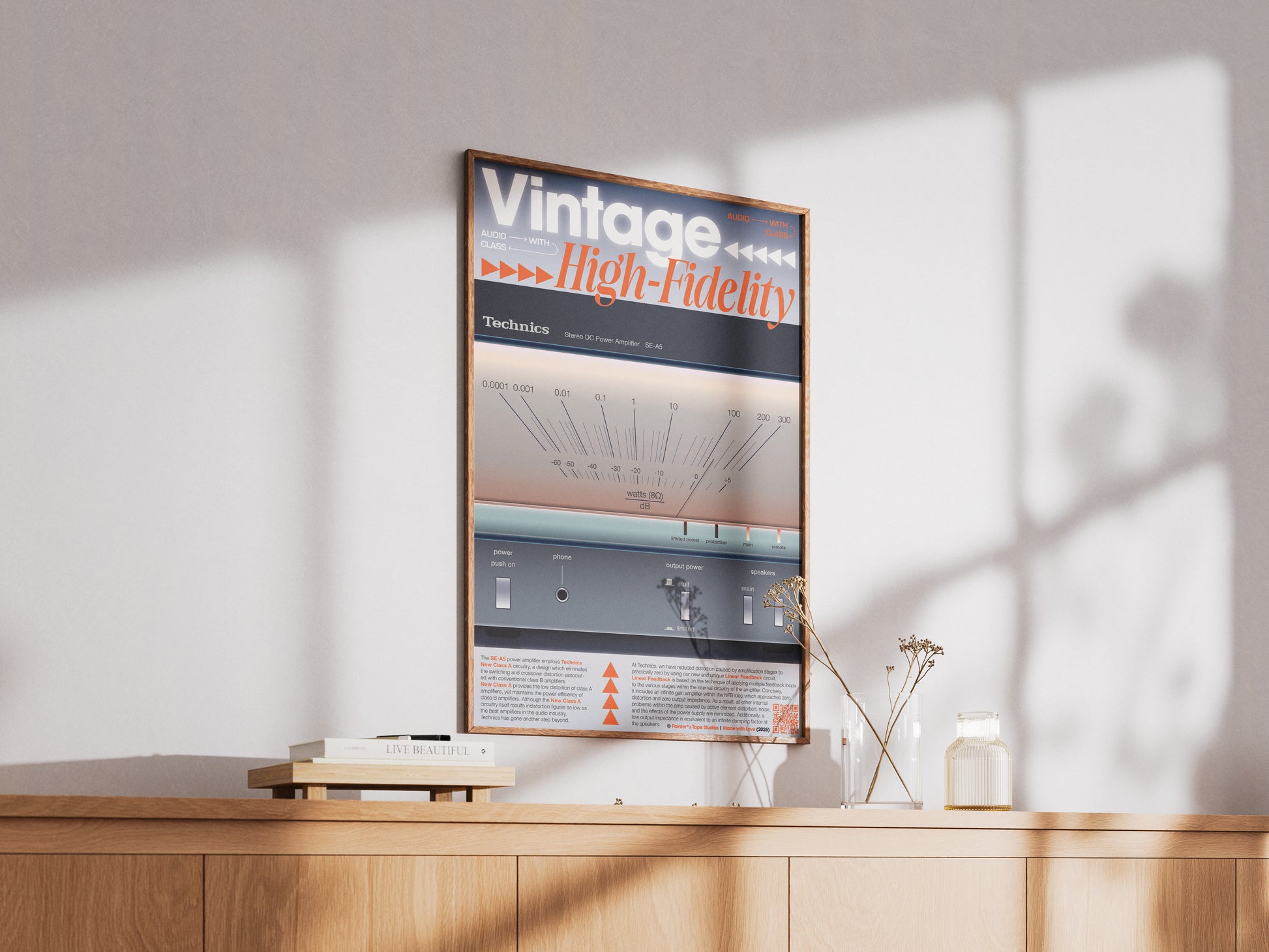 Embrace Japan's "Golden Era" of audio equipment with Technics' SE-A5. Dress your walls in innovation with this vintage hi-fi audio memorabilia, a perfect statement piece for any audio lover.
